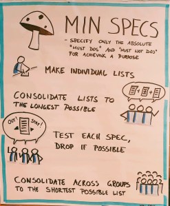 - The discussion took a different turn that I imagined during designing the session. I was about to interrupt and “bring it back” but I instead, I reminded myself, that whatever the output the team creates, is the right output. This made the the team own the output more. I believe they felt heard, because they could relate to the output. Since this session the team has used the output as handles for other discussions and retrospectives.